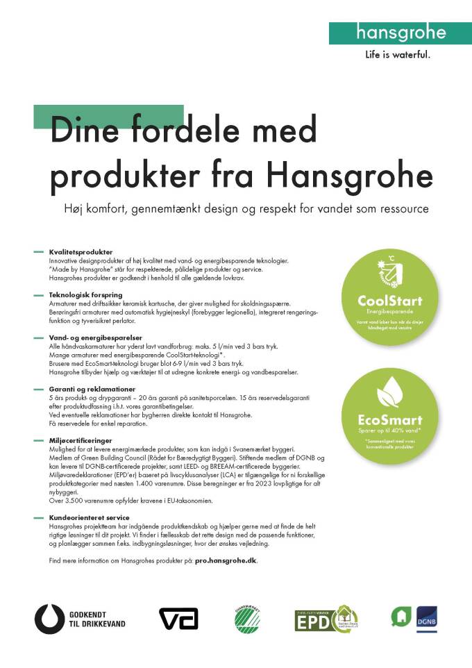 Vores ønske er et vellykket projekt for dig: Hansgrohe er en pålidelig partner lige fra koncept til realisering. Vores produkters høje kvalitet giver dig sikkerhed i forbindelse med gennemførelsen af dit projekt – og mere til. Udnyt fordelene med Hansgrohes individuelle rådgivning, vores knowhow og vores mange services til opnåelse af et vellykket projekt.